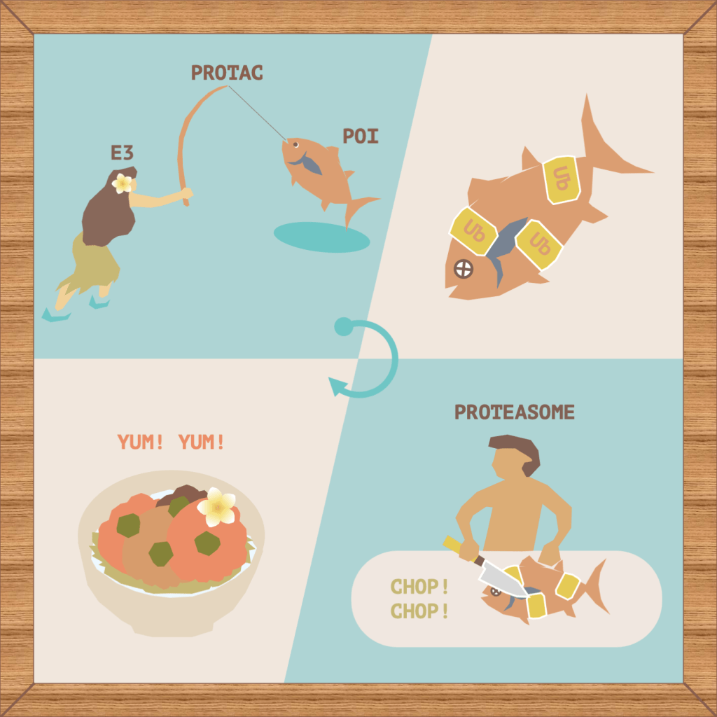 Infectious diseases are an increasing problem worldwide (as we witness with the Coronavirus pandemic), while the emergence of multidrug-resistant bacteria is a major threat. Using Proteolysis targeting chimera technology (PROTAC), we are aim to develop new antibacterial and anticancer drugs. Artwork by M. T.